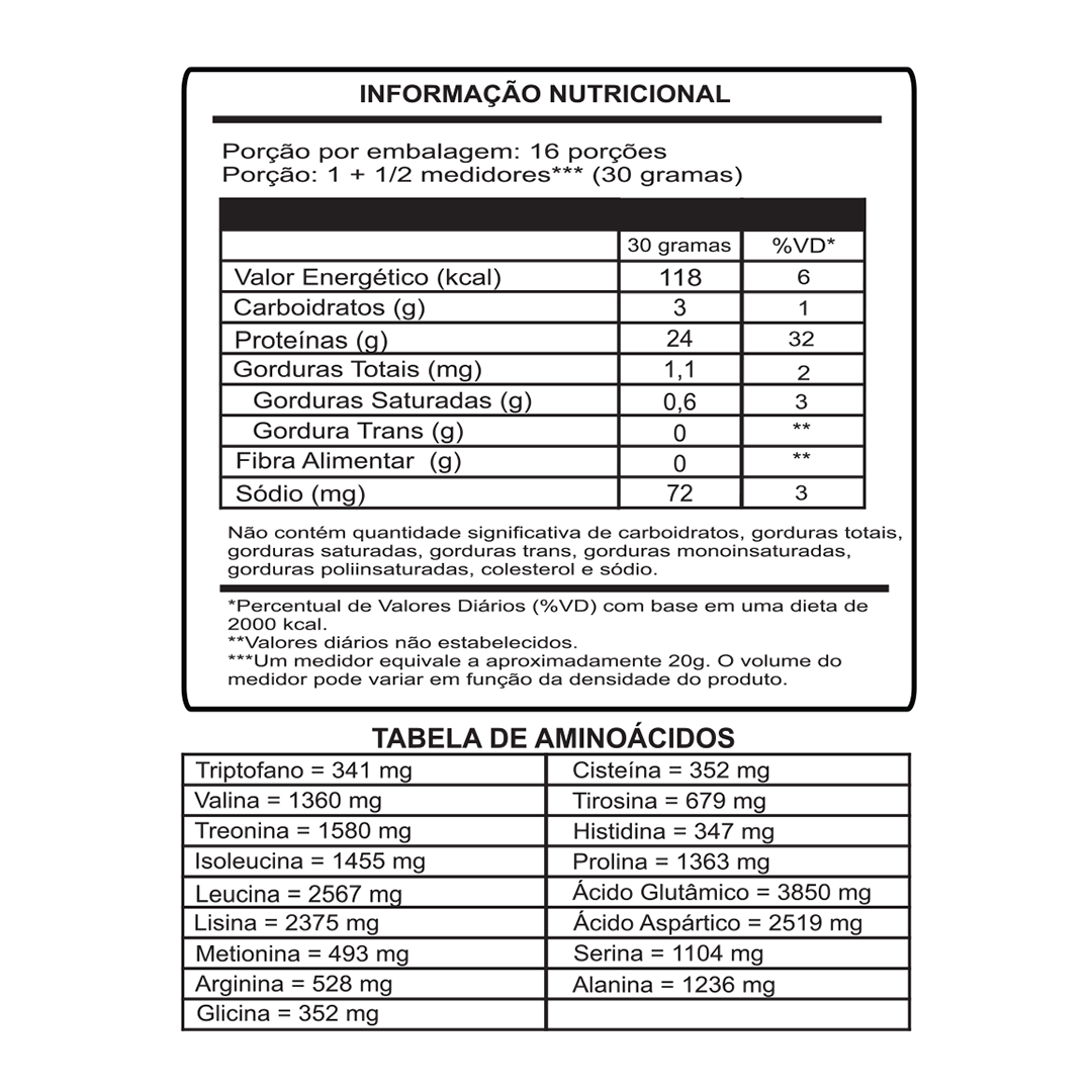 Este produto tem como principal objetivo fornecer proteínas de alto valor biológico, que poderão ser usadas no trabalho de anabolismo muscular, manutenção do tecido muscular ou recuperação das fibras de praticantes de atividades físicas em geral.